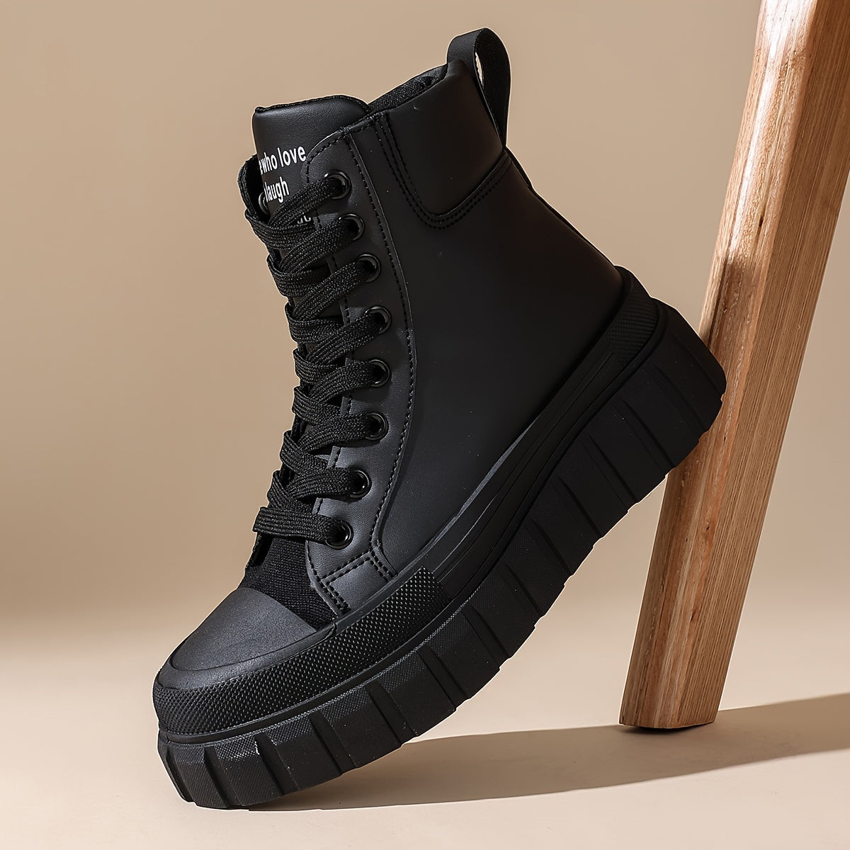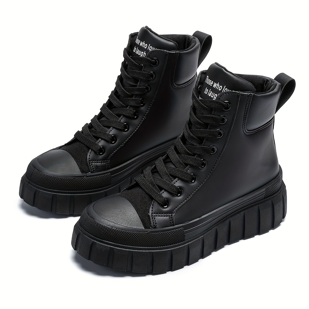 Four Seasons Outdoor Women'S Comfortable Thick Sole Heightening Casual Shoes Daily Laced Black Simple High Top Sports Women'S Shoes