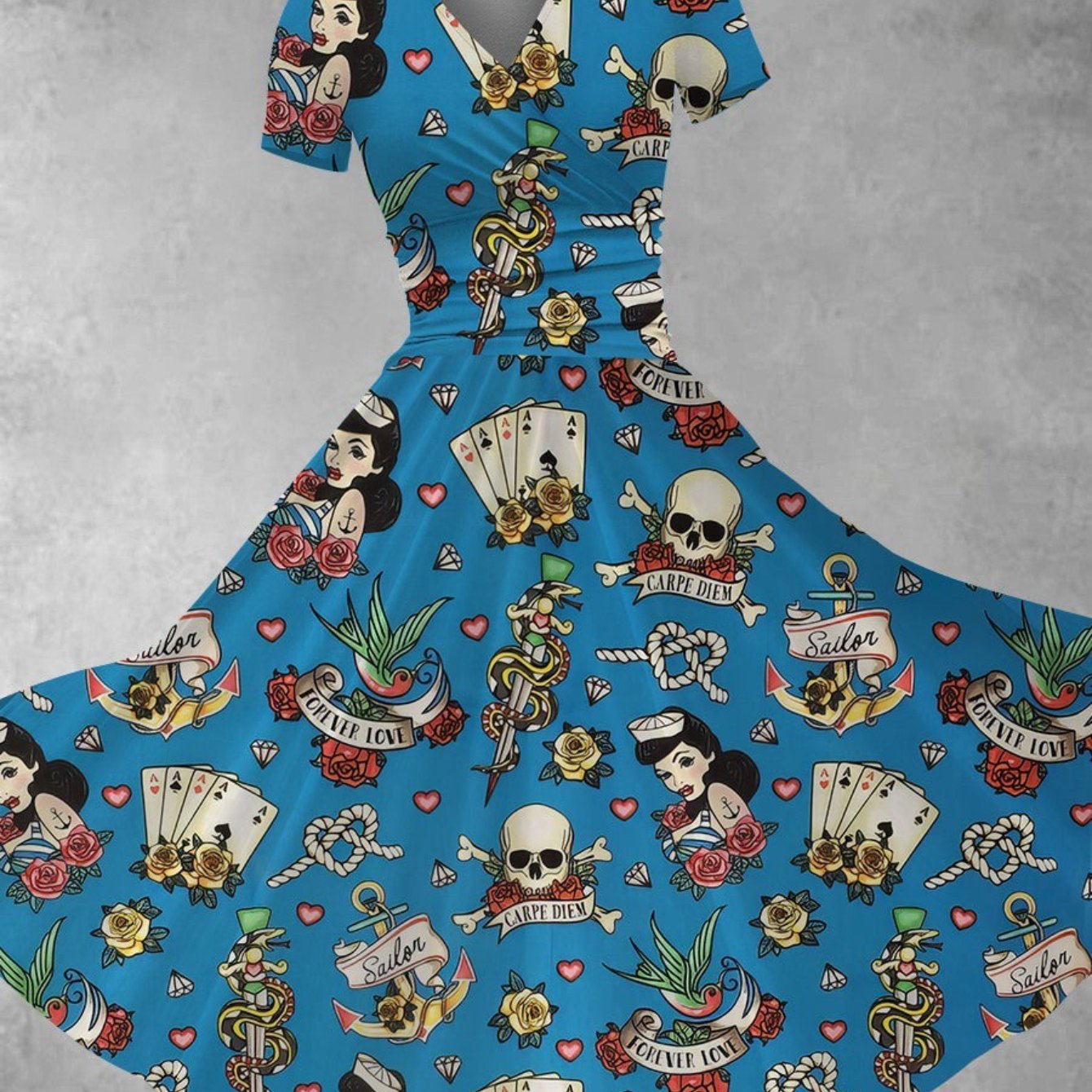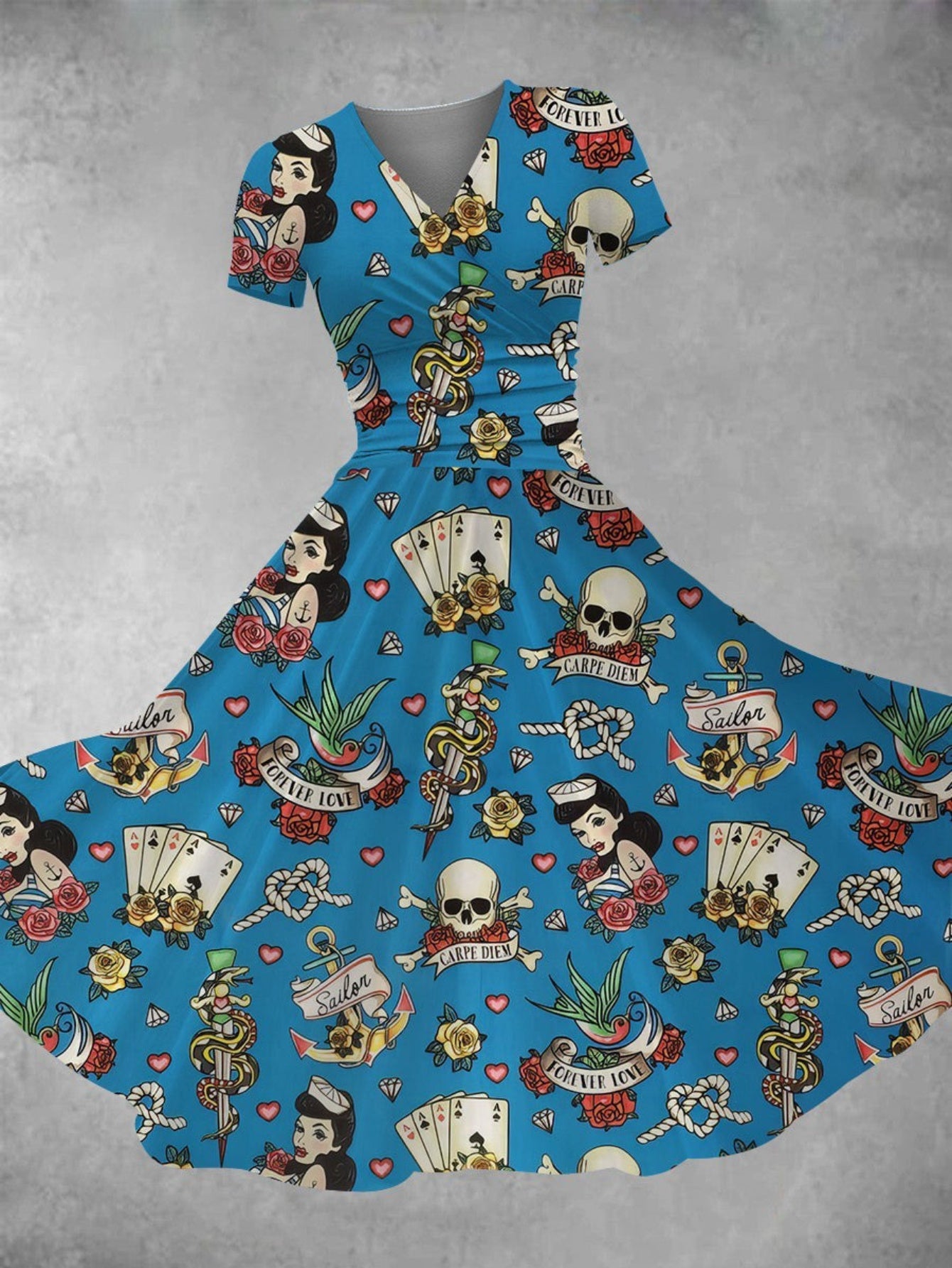 Plus Size - Women'S Halloween Party dress - Gothic costume with Playing Cards, V-Neck flared skirt, Lightweight for Halloween, Themed Events, Everyday Outfits - Plus Size Friendly Casual to Formal Attire, Halloween Clothes, E