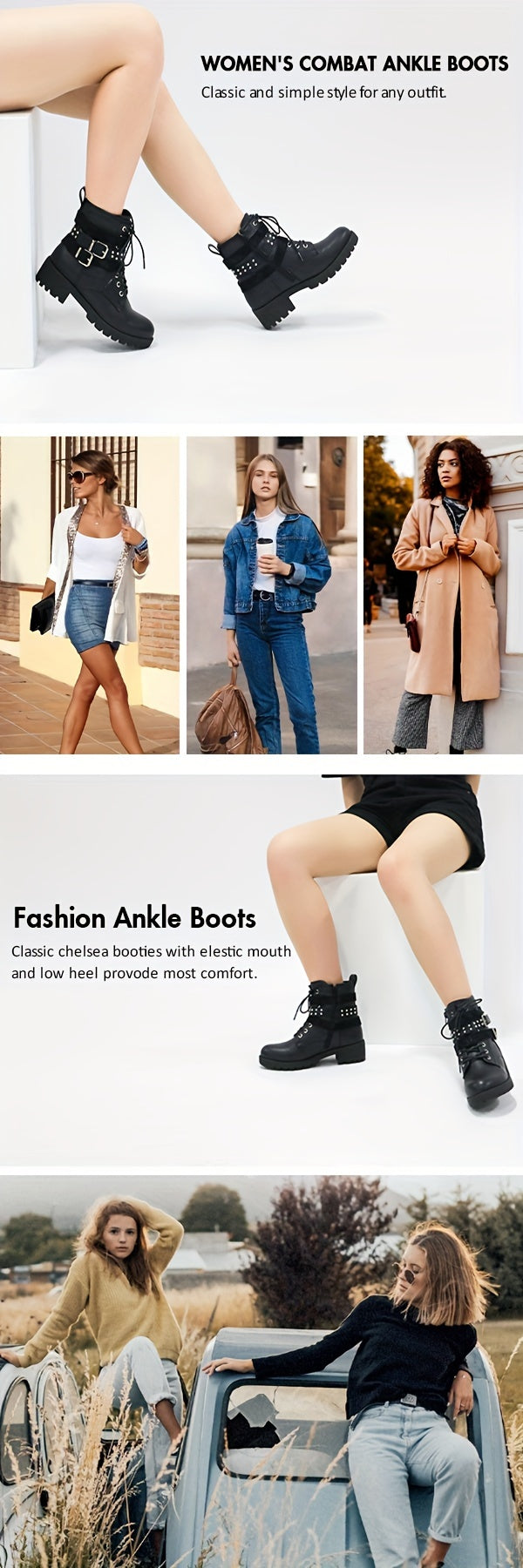 Womens' Combat Lace up Ankle Boots Motorcycle Booties