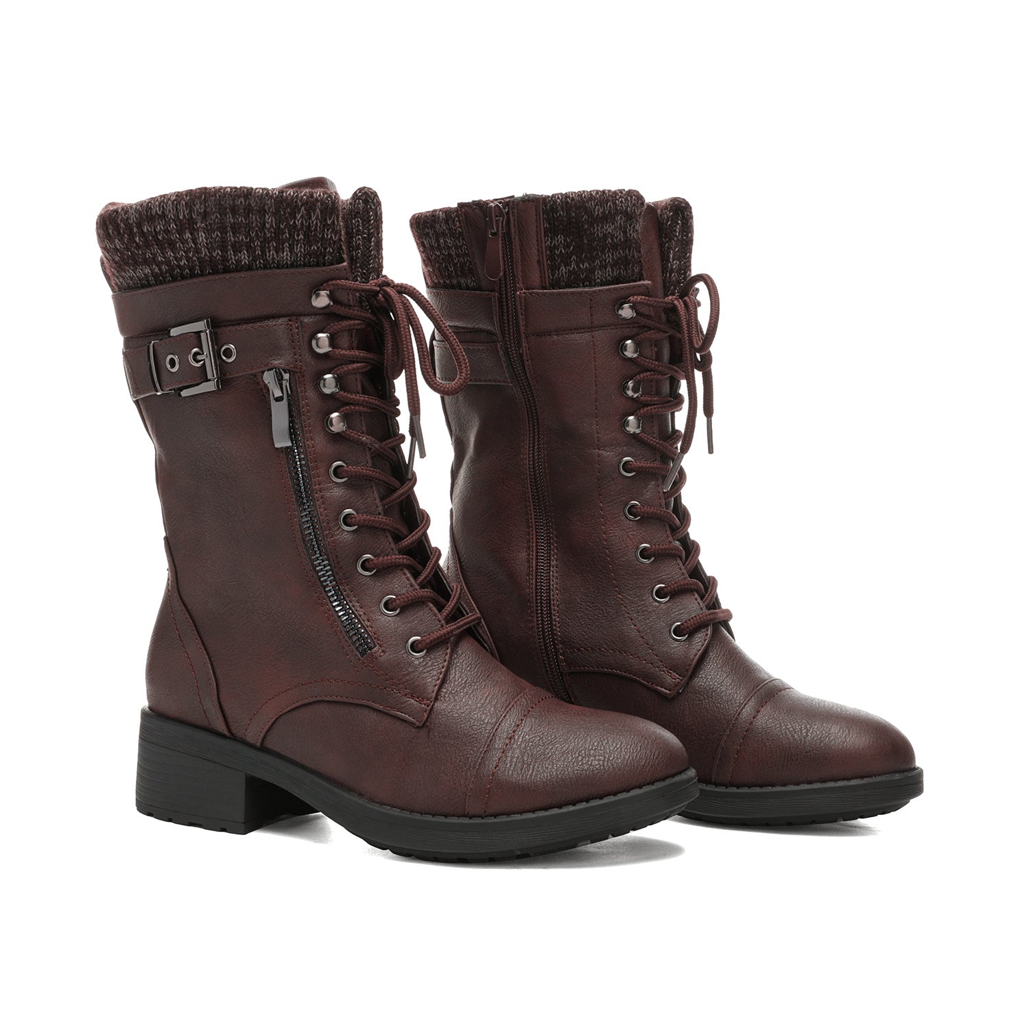Step out with style and practicality in these women’s lace up mid-calf boots. These boots will quickly become your go-to style. Available in a range of colors to match your different outfits.