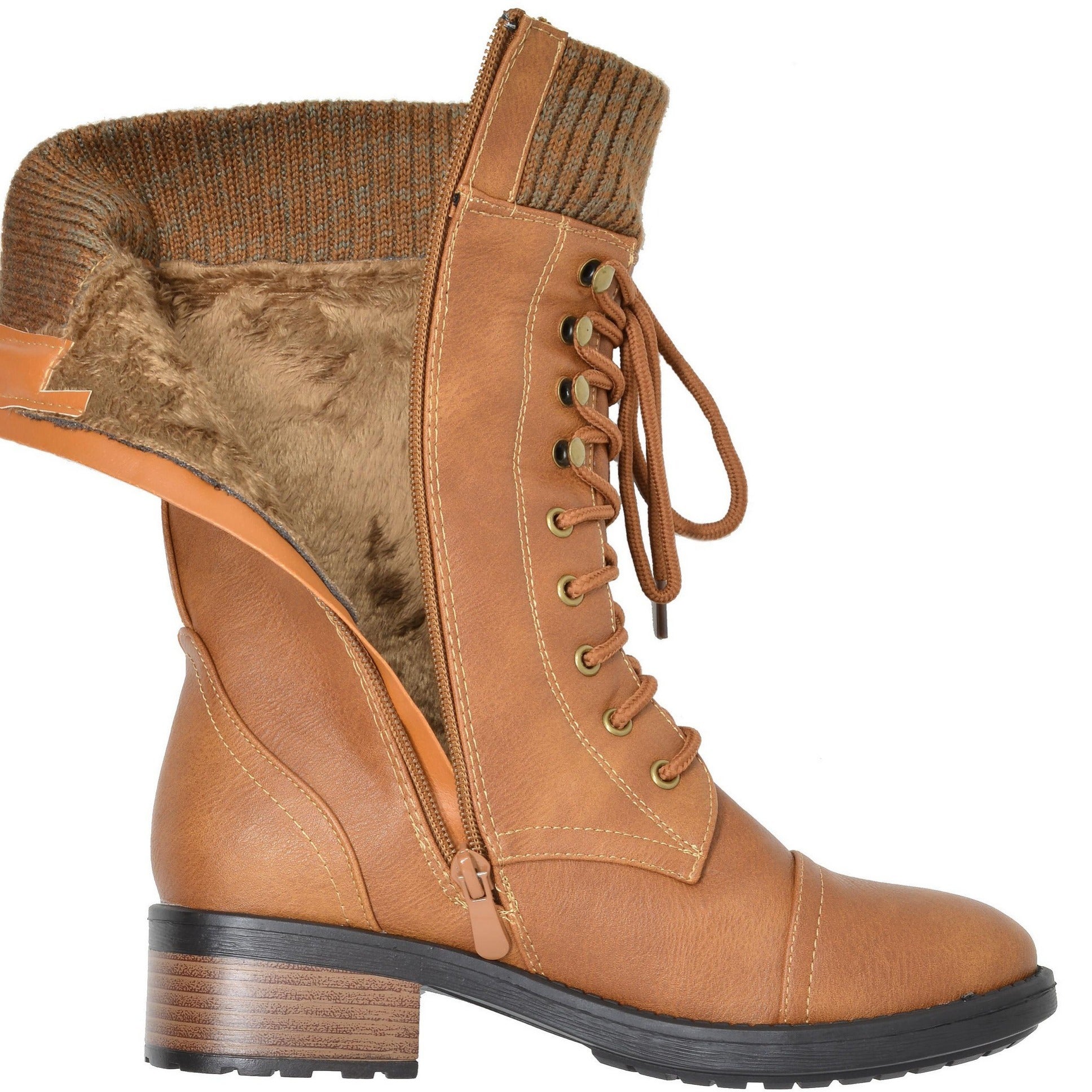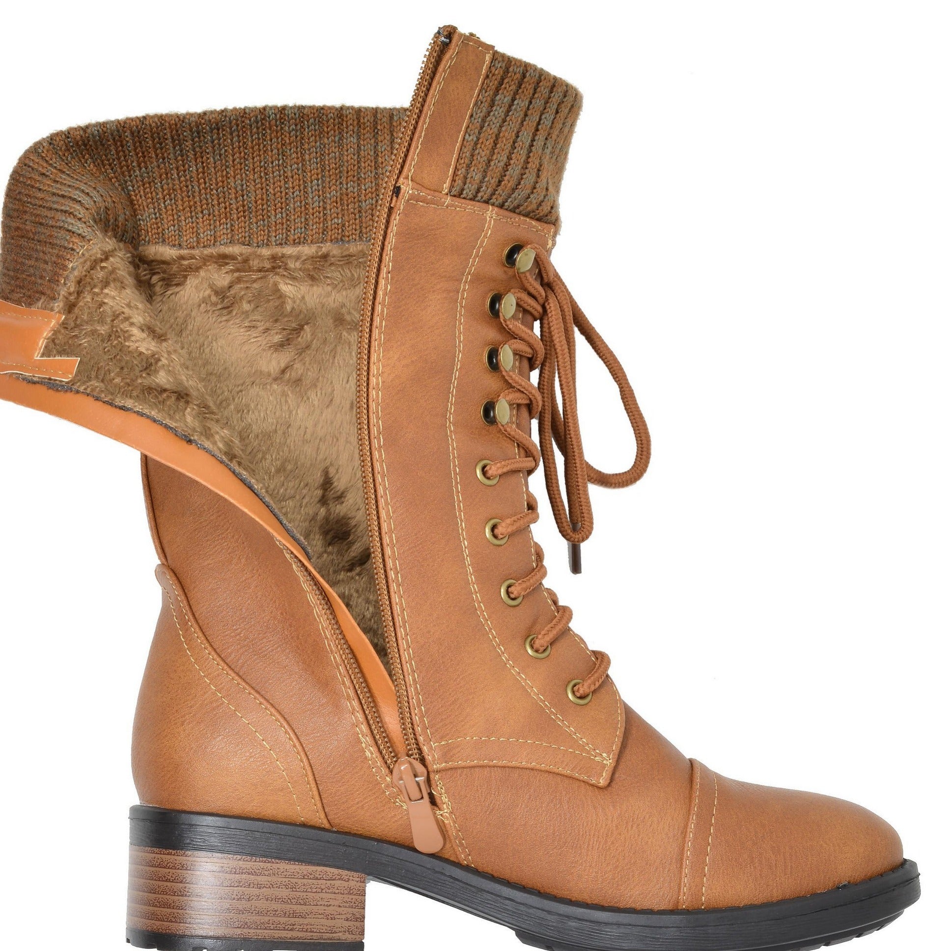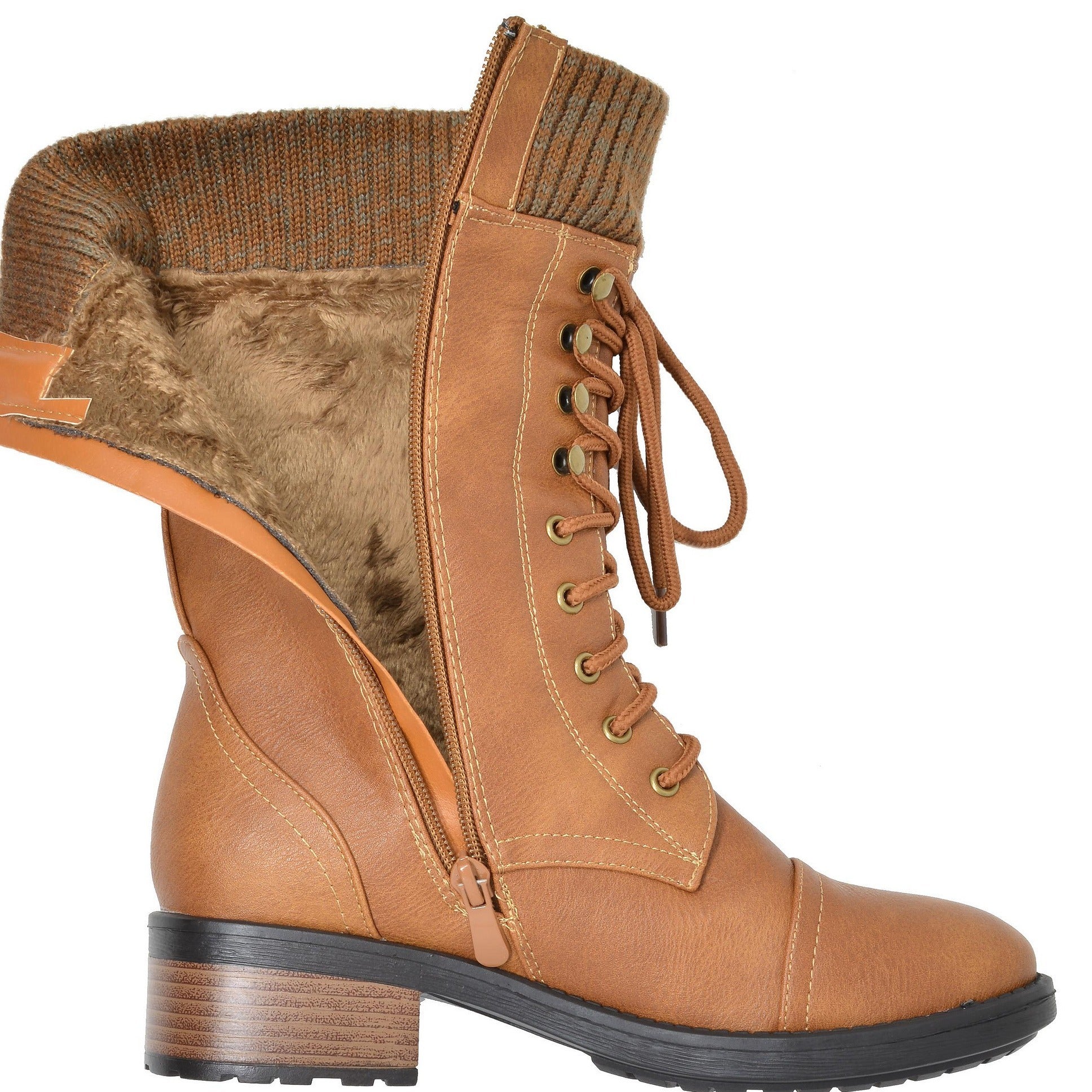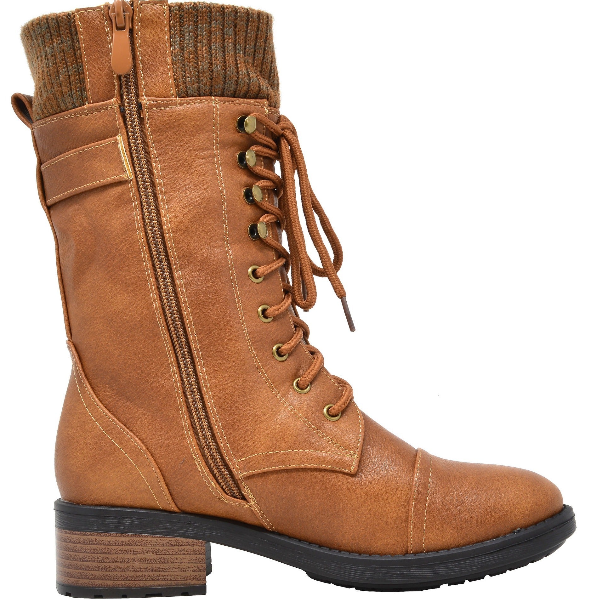 Women's Winter Lace up Mid Calf Riding Boots TPR Outsole